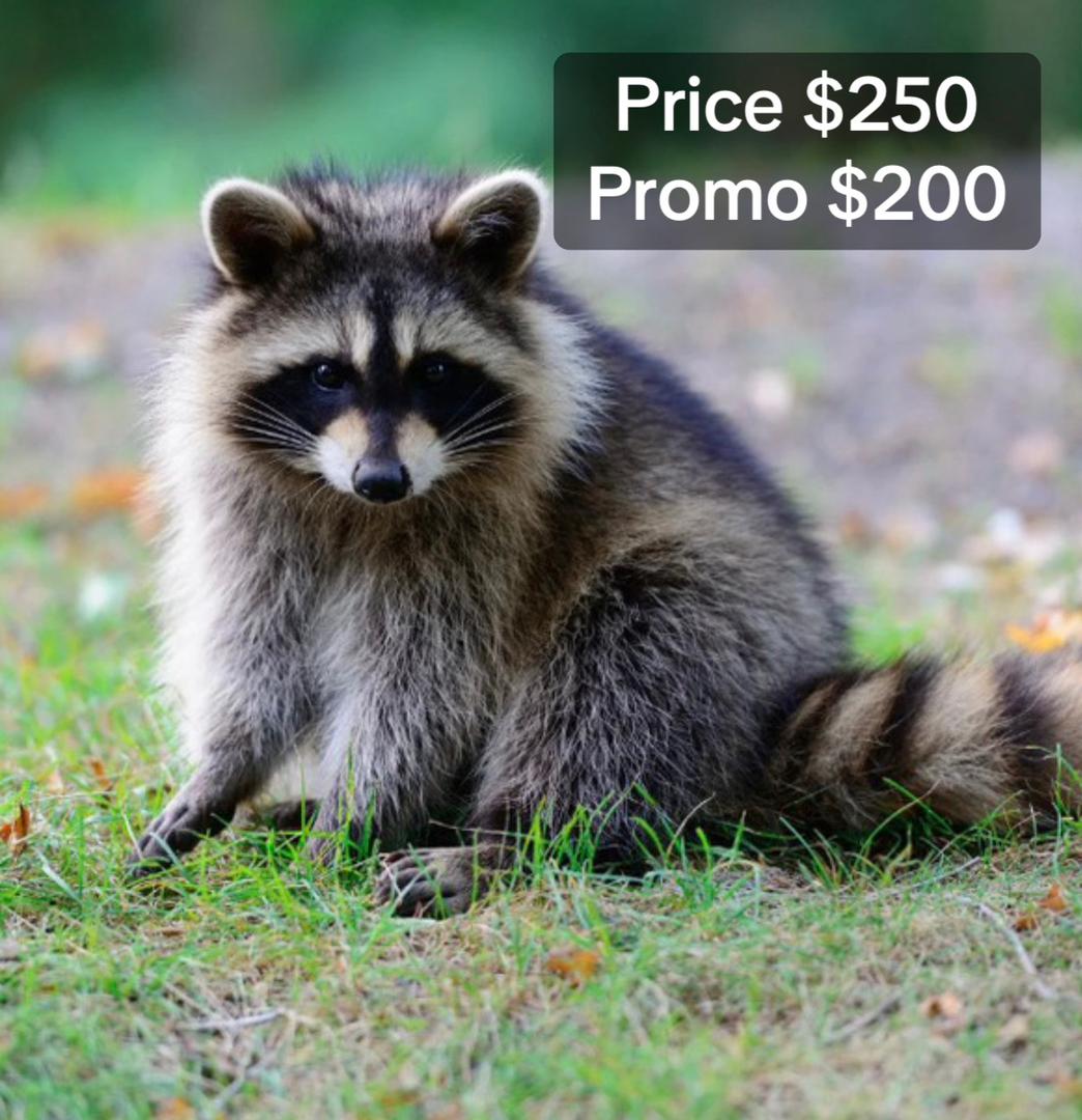Raccoons are intelligent, playful, and highly adaptable animals known for their curious nature and distinctive masked appearance. Baby raccoons, often called kits, are especially friendly when raised in a controlled environment and can form strong bonds with their owners. Our raccoons are healthy, well-socialized, and ready for rehoming, making them ideal for experienced exotic pet lovers. We ensure proper care, feeding, and handling from an early age to provide active, affectionate, and responsive companions.